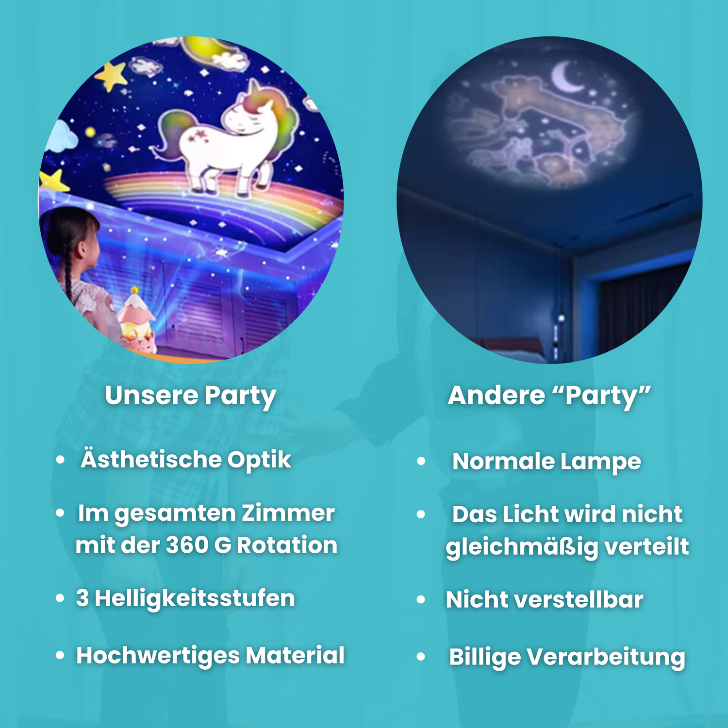 Doch das Beste? Der Projektor ist auch ideal für Geburtstagsfeiern oder Kinderevents, bei denen er eine wunderschöne Atmosphäre schafft. Einfach mitnehmen und das Highlight jeder Party sein!